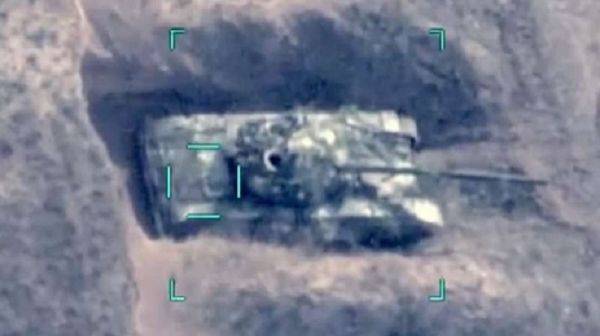 资料图片:阿塞拜疆TB-2无人机瞄准亚美尼亚T-72坦克视频截图,随后该坦克即被摧毁