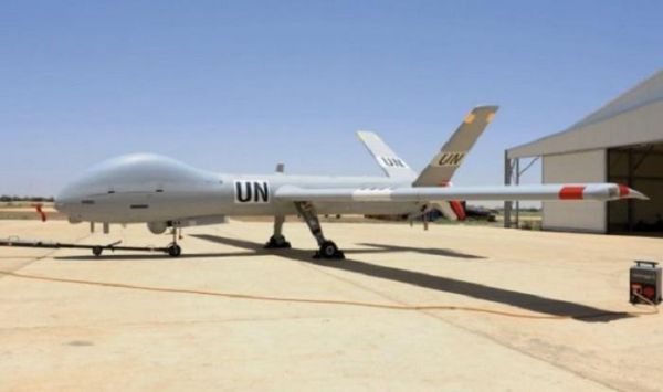 资料图片:联合国在马里部署的“赫尔墨斯”远程无人机。(联合国官网)